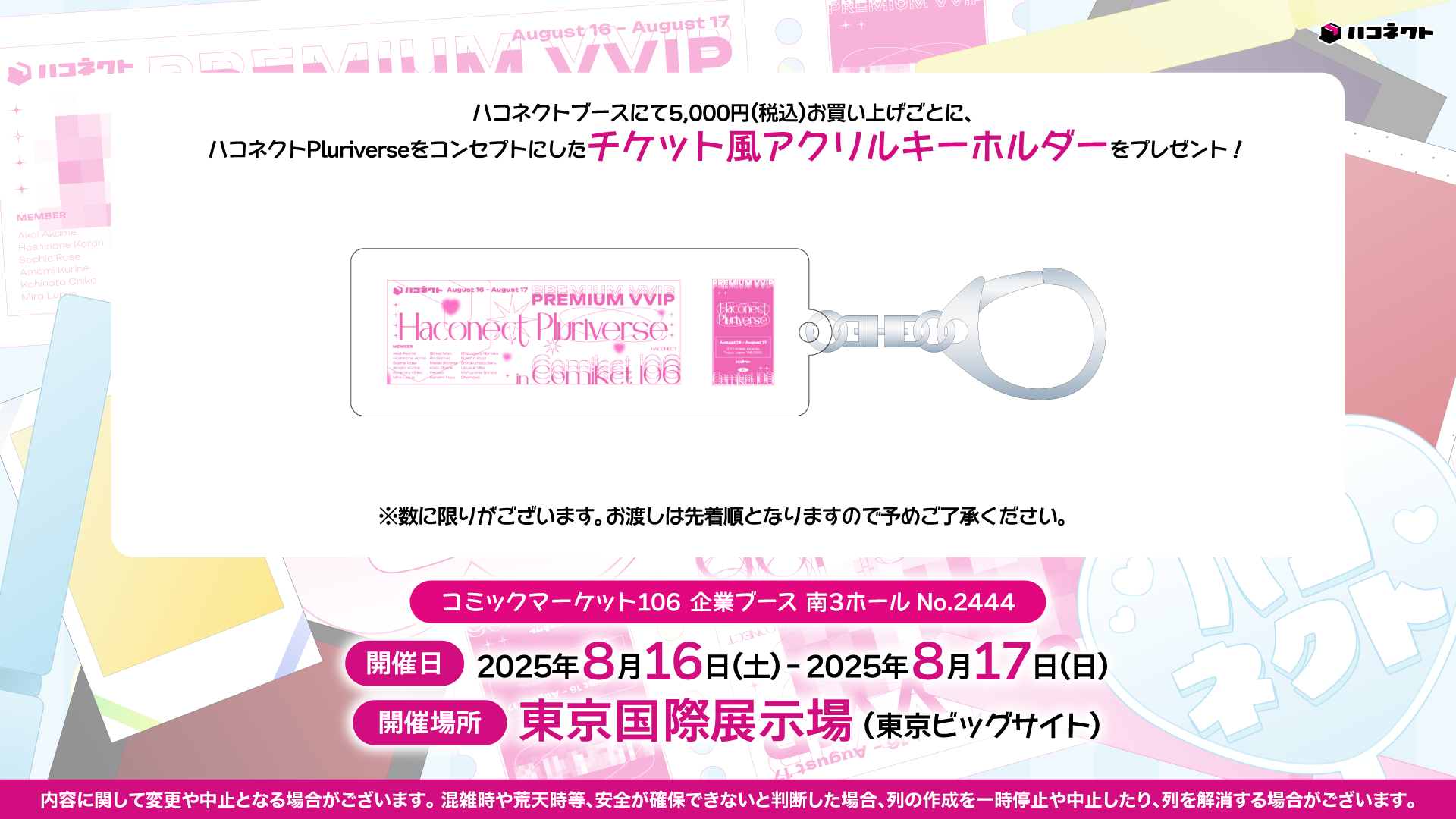 ハコネクト公式チャンネルにて、コミケ特番の配信が決定いたしました!