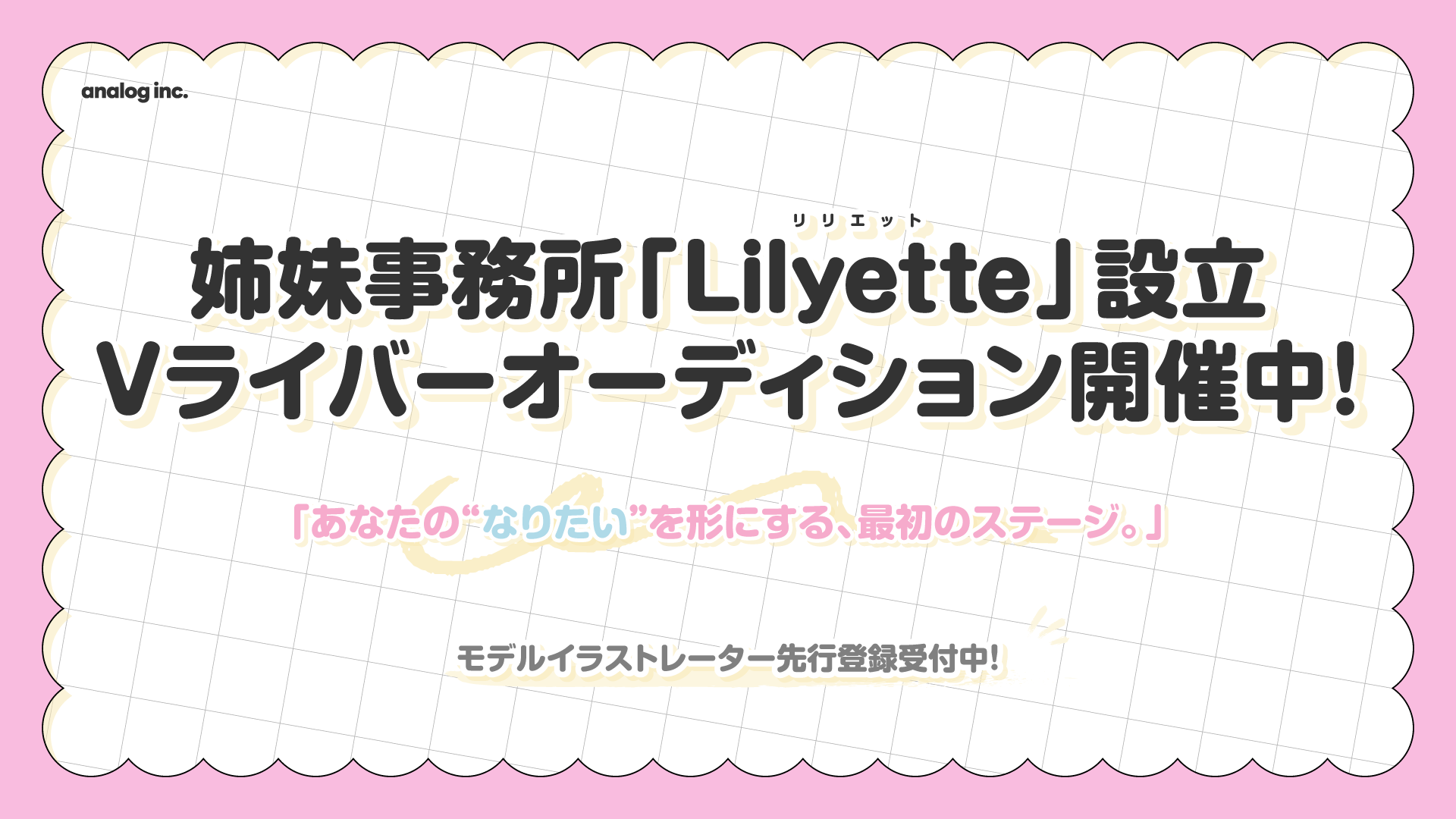 姉妹事務所「Lilyette」設立&Vライバー募集のお知らせ