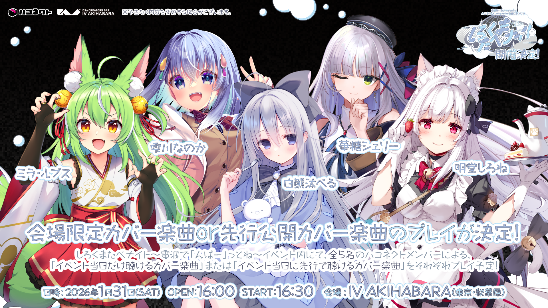 白熊汰べるpresents ハコネクトメンバーカバー楽曲DJイベント「しろくまたべナイト ~電波で「んぱー」っとね~」が開催決定!